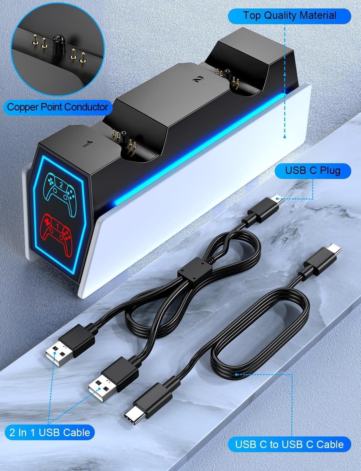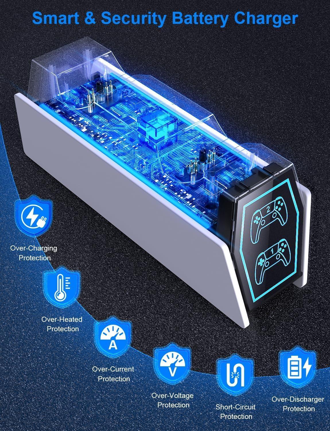 برای بهترین عملکرد در ایران، میتوانید از کابلهای داخل بسته برای اتصال به کنسول PS5 استفاده کنید یا در صورتی که به آداپتور نیاز دارید، آداپتور 5V 3A توصیه میشود. داک بهگونهای ساخته شده که قرار دادن کنترلرها ساده و ایمن باشد؛ فقط کلیک کنید تا در جای خود بنشیند و چراغ LED وضعیت را نشان دهد. این محصول گزینهای اقتصادی و کارآمد در مقایسه با شارژر رسمی بهحساب میآید و برای خانوادهها یا گیمرهایی که همیشه به چند کنترلر نیاز دارند مناسب است.