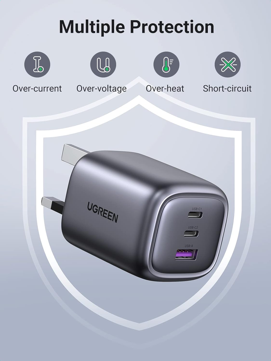 UGREENشارژر 65 وات UGREEN Nexode با هدف سادهسازی روزمرهسازی شارژ دستگاهها طراحی شده است. تصور کنید در یک روز کاری پرمشغله، لپتاپ و گوشی و تبلتتان همزمان نیاز به شارژ داشته باشند: یک پورت USB-C با پشتیبانی PD3.1 تا 65 وات توان خروجی میدهد و دو پورت دیگر امکان شارژ سریع گوشی و تبلت را فراهم میکنند. تکنولوژی GaN باعث شده بدنه شارژر نسبت به نمونههای مرسوم کوچکتر و خنکتر باشد، در حالی که راندمان تا 95٪ بالا رفته است. پلاگ تاشو و وزن کم، آن را به همراهی مناسب برای کیف و سفر تبدیل میکند.